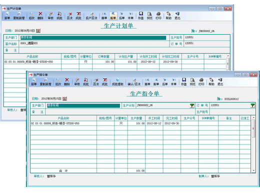 用戶可根據客戶訂單編制相應的產品生產計劃,系統會根據預先設定的產品BOM單,自動生成半成品生產計劃。同時系統提供強大的生產計劃查詢分析功能,可以實時查詢生產計劃的投產、完工和在產品情況,對整個生產計劃的執行情況做到一目了然。