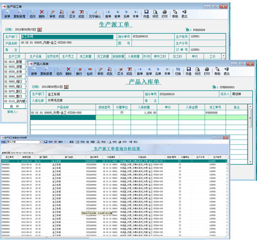 生產指令下達到生產車間后,生產車間要根據生產指令,向各個生產工序和崗位的 生產工人進行派工,系統可根據預先設定的工序工價檔案快速生成生產派工單,為準確快速進行生產安排和員工考核提供了有力保證。