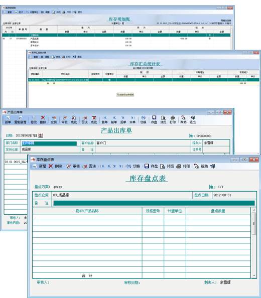 在庫存管理中,系統提供了:半成品生產領料、產成品銷售出庫、產品移庫、產品損溢和庫存盤點等功能。同時提供產品庫存匯總表和庫存明細帳,實現對產品庫存的實時有效監管。