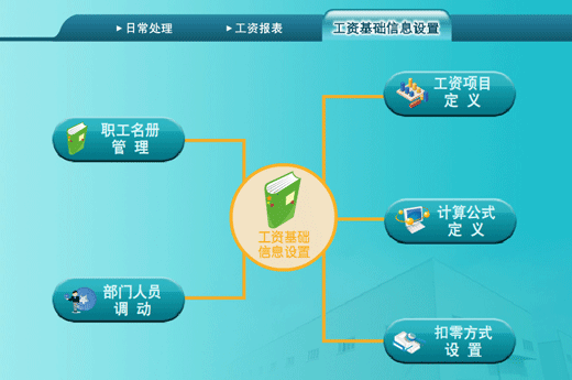系統提供了強大的工資管理功能,用戶可以自定義工資項目、自定義工資項目運算公式。在自動提取計時計件工資和輸入其他工資項目數據后,系統會根據用戶設定的運算公式,自動計算生成各種工資報表。